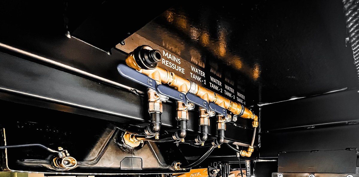 Legend Tycoon Slider OnRoad Series , The 150mm A-frame connects to an overengineered Legend design S&M powder coated chassis, the whole caravan is taken care by Cruisemaster 4500kg DO45 hitch to the tow vehicle. Suspension is Cruisemaster’s most robust system in its independent series. Stopping power comes from 12in electric brakes. All the Water outlets on the Tycoon slider are guarded against stone damage which also instead of using PVC connectors we have gone next level and have committed to use all Brass Fittings.
